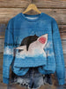 Women's Cat Shark Ocean Fun Print Long Sleeve Top