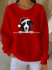 Women's Christmas Hat Dachshund Ribbed Round-Neck Sweatshirt