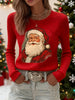 Women's Christmas Santa Claus Print Casual Long Sleeve Waffle Top