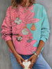 Women's Cute Animal Contrast Print Casual Long Sleeve Top