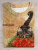 Women's Cute Cat Floral Pattern Casual Round Neck Short Sleeve T-Shirt