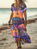 Women's Dot Painting Art Print Cotton Linen V-Neck Short Sleeve Dress