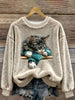 Women's Funny Cat Art Print Casual Flannel Hoodie