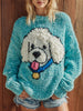 Women's Fuzzy Poodle Dog Felt Cozy Knit Sweater