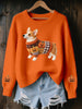 Women's Halloween Inspired Corgi Felt Art Cozy Knit Sweater