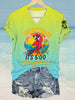 Women's I'm Retired It's 5 O'clock Everywhere Parrot Print Casual V-Neck Tee