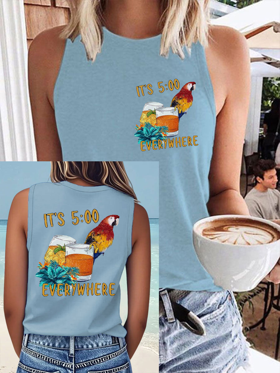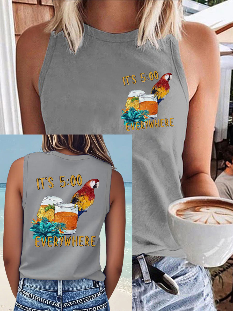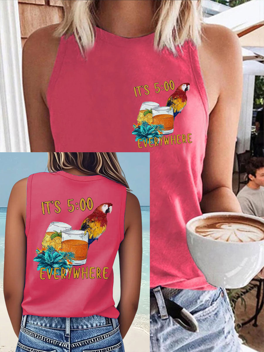 Women's It‘s 5 O'clock Everywhere Print Casual Faux Cotton Vest