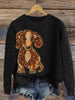 Women's Lovely Dachshund Dog Beaded Jewelry Art Cozy Knit Sweater