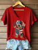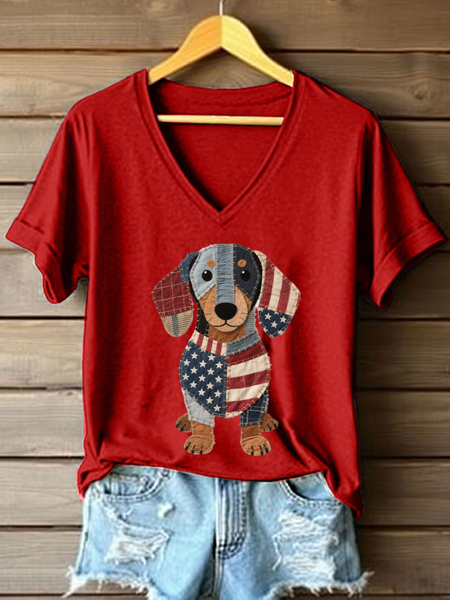 Women's Lovely Dachshund Patchwork Pattern V-Neck T-Shirt