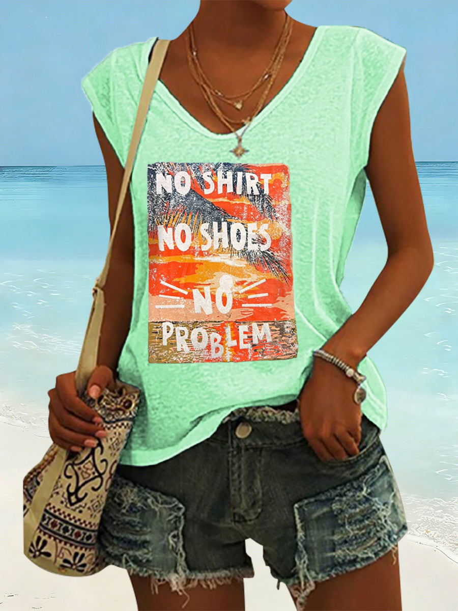 Women's No Shoes No Shirt No Problems Print Vest Top