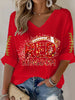 Women's Red Kingdom Football Fans Lovers Gameday Casual V-Neck Top