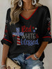 Women's Red White and Blessed Bling Pattern V-Neck Waffle Top