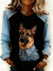Women's Retro Animal Art Print Comfortable Denim Patchwork Sweatshirt