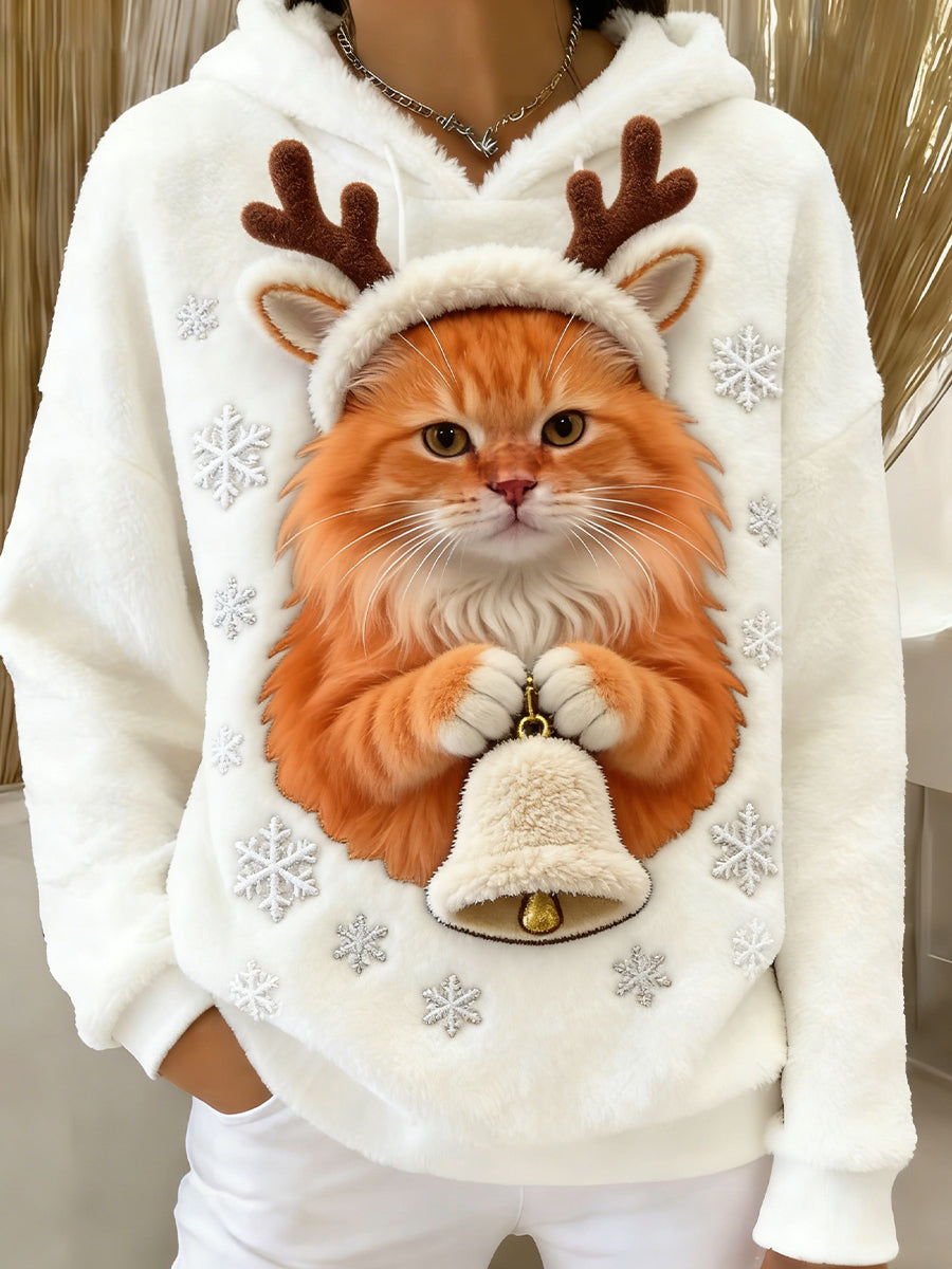 Women's Retro Animal Art Print Comfortable Flannel Hooded Sweatshirt