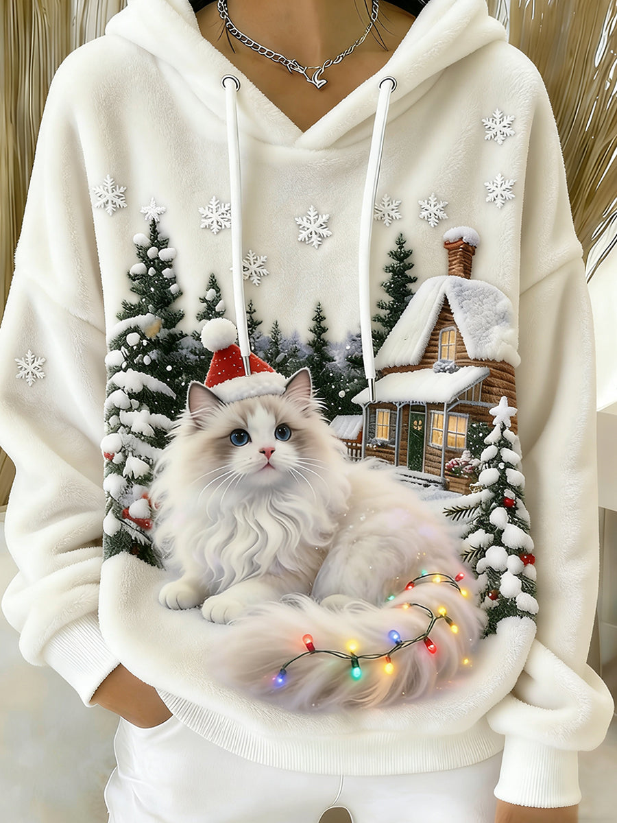 Women's Retro Animal Art Print Comfortable Flannel Hooded Sweatshirt