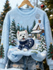 Women's Retro Animal Christmas Art Print Casual Flannel Top