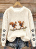 Women's Retro Animal Christmas Art Print Casual Flannel Top