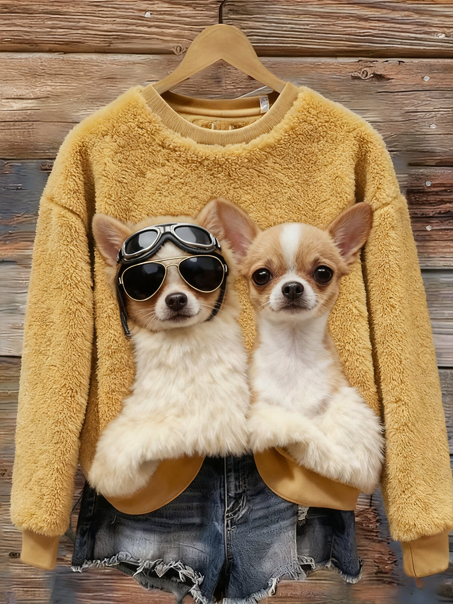 Women's Retro Animal Christmas Art Print Casual Flannel Top