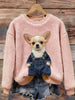 Women's Retro Animal Christmas Art Print Casual Flannel Top