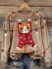 Women's Retro Animal Christmas Art Print Casual Flannel Top