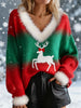 Women's Retro Christmas Reindeer Gradient Loose Long Sleeved Fur-Trimmed Sweater