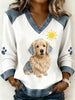 Women's Retro V-neck Denim Patchwork Animal Print Casual Comfort Top