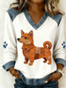 Women's Retro V-neck Denim Patchwork Animal Print Casual Comfort Top