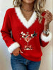 Women's Santa Claus sitting on a red wine glass printed fur collar top