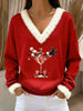 Women's Santa Claus sitting on a red wine glass printed fur collar top
