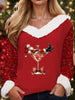 Women's Santa Claus sitting on a red wine glass with a printed fur collar top