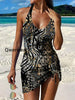 Women's Vintage Art Print Pleated V-Neck Casual Swimsuit