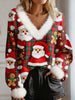 Women's Vintage Christmas Gingerbread Man Check Loose Long Sleeved Fur-Trimmed Sweater