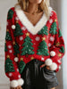 Women's Vintage Christmas Tree Loose Long Sleeved Fur-Trimmed Sweater